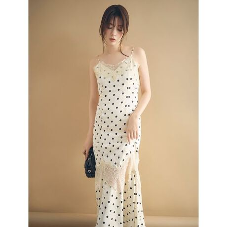異なる2つのレースを施したスリップワンピースは、女性らしさとモード感を両立した1枚。