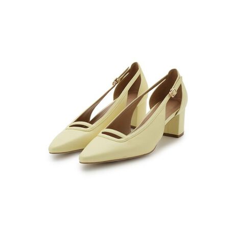 サイドオープンデザインで肌感を添えたパンプスは、暑い時期でもはきやすく、抜け感たっぷり。