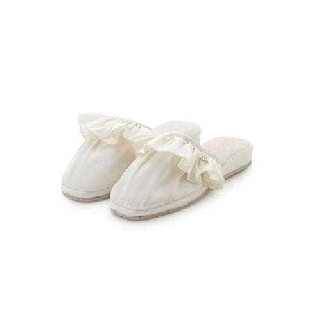 <b>エレガントなサテンフリルが足元を彩るルームシューズ</b>