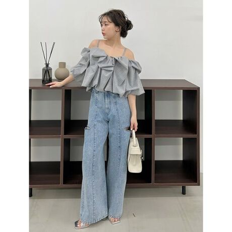 <b>【カットアウトで抜け感を加えたバレルデニムパンツで旬顔に】</b>