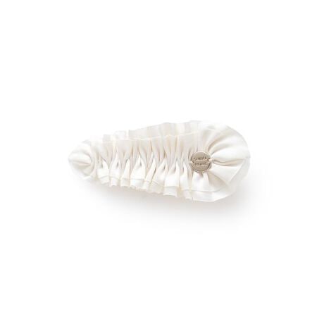 大人っぽい色使いと、艶やかな質感のサテンフリルが華やかなヘアクリップです。