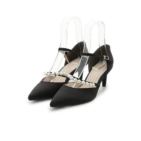 パール&ビジュー付きのストラップパンプスが存在感たっぷり。