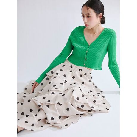 ランダムなフリルティアードデザインを施したスカートは、動きに合わせてエアリーに揺れる春から夏にかけてちょうどいい一着。