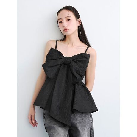 華やかなビッグリボンをあしらったペプラムキャミトップスは、1枚で存在感抜群。