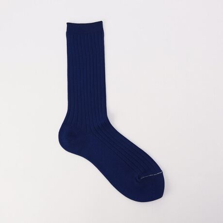 滑らかな肌触りと、薄手ですっきりとした見た目が特長の上品なリブソックスです。