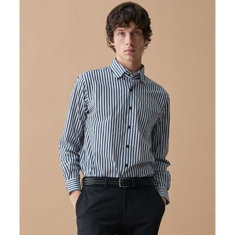 【ストレッチ・イージーケア・JAPANファブリック】ストライプストレッチシャツ