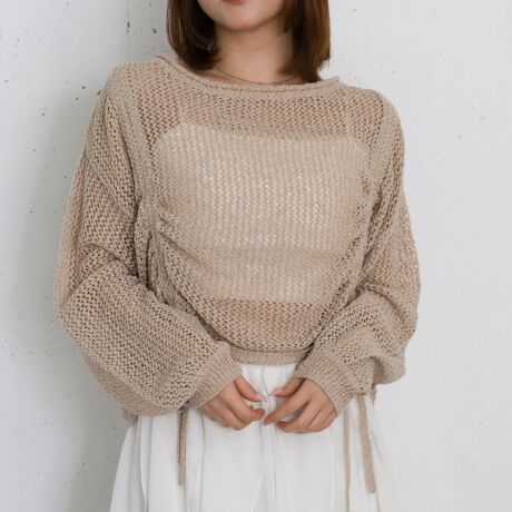 ・メッシュ編みが春らしい抜け感を演出するニットプルオーバー