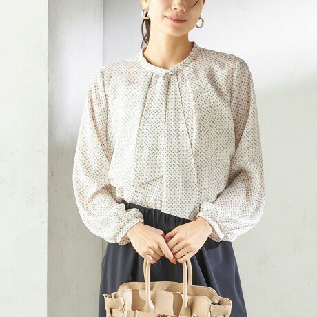 クラシカルで華やかさのある幾何柄プリントを使用したブラウス。