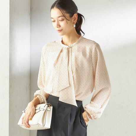 シンプルなスタイリングに花を添えてくれる着映えブラウス。
