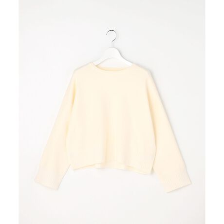 ・ジャガード編みと太めのリブがポイント・たっぷりとゆとりのあるシルエット・短丈レングスでトップスアウトでもスタイルアップが叶う・開きすぎない上品なボートネック