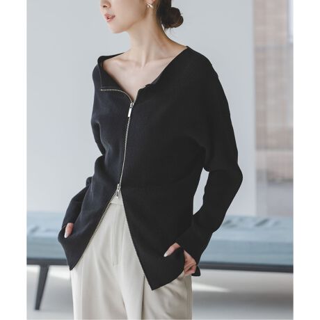 袖はタイト&身頃はゆとりのあるシルエットに、フロント全身に配したジップがポイントとなり、カジュアルテイストでありながら女性らしく着られる一着です。