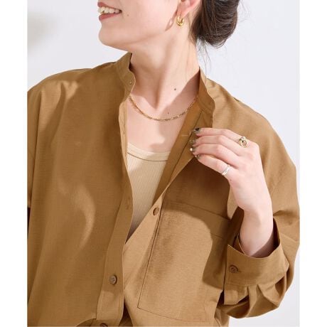 まるでシャツの下にインナーを重ねているかのようなレイヤードデザインで、コーディネートいらずの便利さが魅力です。バルーンシルエットが程よく抜け感を演出し、1枚でスタイリングが完成。シアー素材の透け感とリブの温かみのある質感のコントラストが、着こなしに立体感と旬な雰囲気をプラスします。