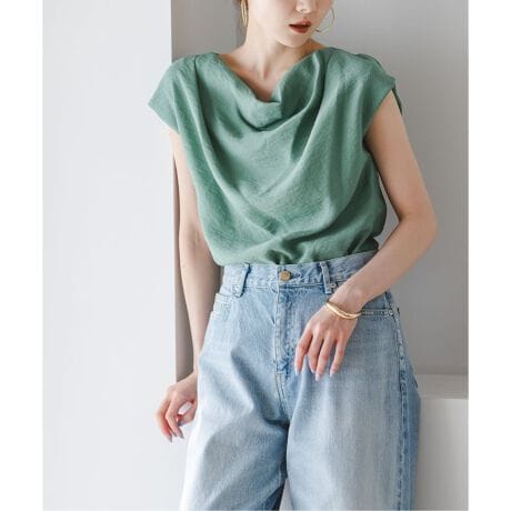 ややウエストシェイプで女性らしさやスタイルをきれいに見せるは継続。デニムやNOBLE名品のスラックスパンツとも相性良くお召しいただけます。