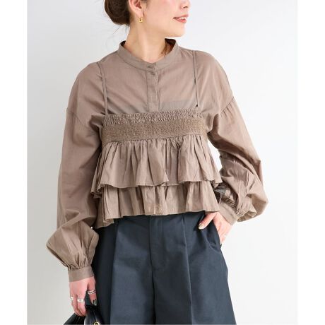 フリルキャミソールとセットになったキャッチー感のあるフェミニンブラウス。