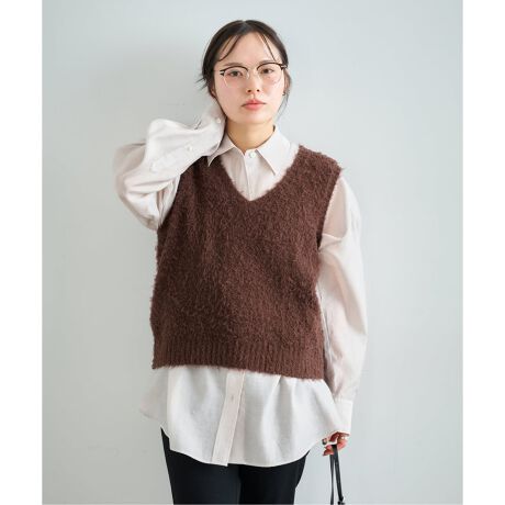 軽やかな表情を楽しむ、コットンシャギーニットベスト