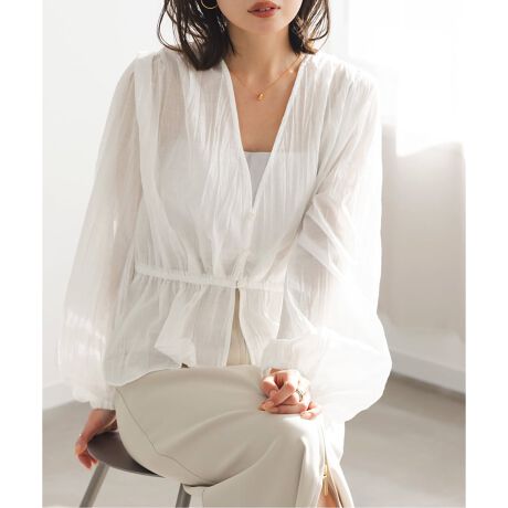 ハリのあるテクスチャーで着映えを叶えたデザインブラウス。