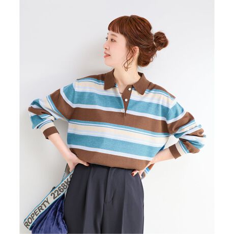 配色マルチボーダーが目を惹く襟付きプルオーバー。