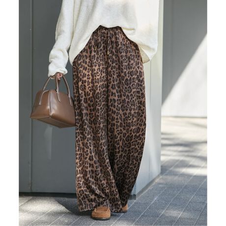 着こなしの主役になる、ニュアンシーなレオパード柄のイージーパンツ。