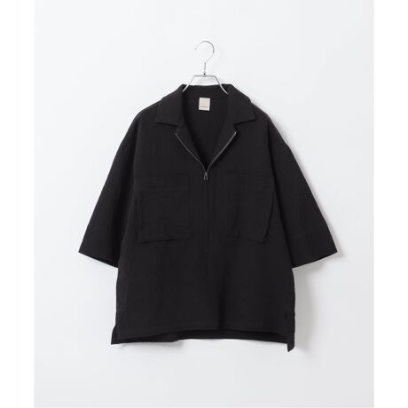 日本の伝統的な「刺し子」をイメージした、立体的な表面感が特徴のハーフジップシャツ。
