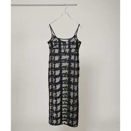 オーガンジー素材に透け感のある花びらのような装飾を施した、エレガントなミディ丈スリップドレス。パーティシーン等のドレスアップスタイルにはもちろん、カジュアルコーデに合わせて新鮮なレイヤードスタイルもおすすめです。