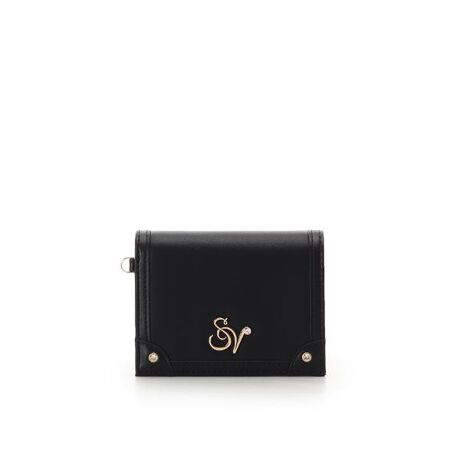 ◇SAMANTHAVEGA(サマンサベガ)のロゴ金具折財布エンブレムのようなSVメタルパーツにきらりと輝くストーンをあしらった、サマンサベガらしい大人可愛いシリーズ。二つ折りタイプですっきりとした見た目と充実した機能性が魅力です。▽デザイン・きらりと輝くストーンとゴールドの金具が上品で華やかな印象に。・マットな質感にほんのりシボ感を加えた合皮素材を使用。・甘すぎないフレームデザインにこだわったおしゃれなアイテム。▽機能性・カードは最大6枚収納可能です。・L字ファスナーで小銭入れ部分も取り出しやすいのがポイント。・薄マチでコンパクトなのでミニバッグにも適したサイズ感です。・チャームをつけられるD金具が付いており、自分らしくアレンジを楽しんでいただけます。