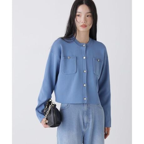 胸ポケットデザインがポイントのジャケット風ニットカーディガン。UVカット機能付きと、ご自宅で洗濯洗いができるのも嬉しいポイント!フロントのゴールド釦が華やかな印象で、通勤やオフィスシーンちょっとしたお出掛けまで幅広く活躍します。