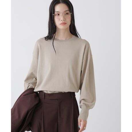 程よいゆとりと心地よい素材感が魅力のワイドプルオーバーニット。しなやかで滑らかな肌触りと伸縮性を兼ね備え、ストレスフリーな着心地。通勤シーンにも対応でき、トレンドに左右されないデザインなので、長く愛用できる一枚です。