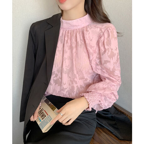 ジャガードフラワーバルーンスリーブブラウス