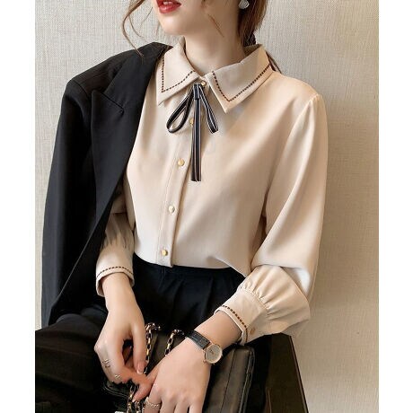 リボンで印象チェンジが楽しめる、きちんと感漂う大人フェミニンシャツ。
