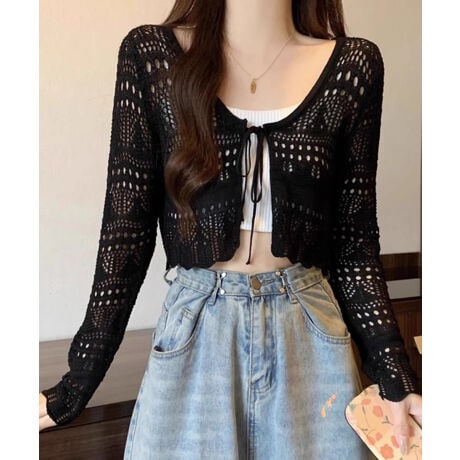 クロシェ編みサマーニットカーディガン シアートップス