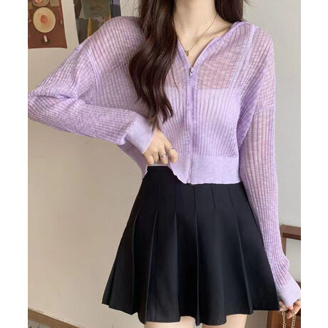クロップド丈サマーニットシアーフーディー