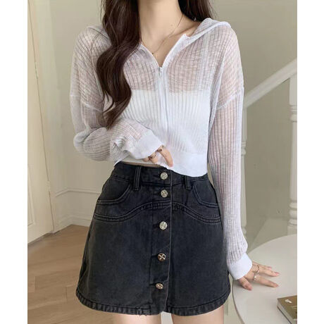 クロップド丈サマーニットシアーフーディー
