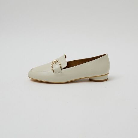 オリジナルで生み出したバックルを引き立たせる、シンプルなデザインのローファー。