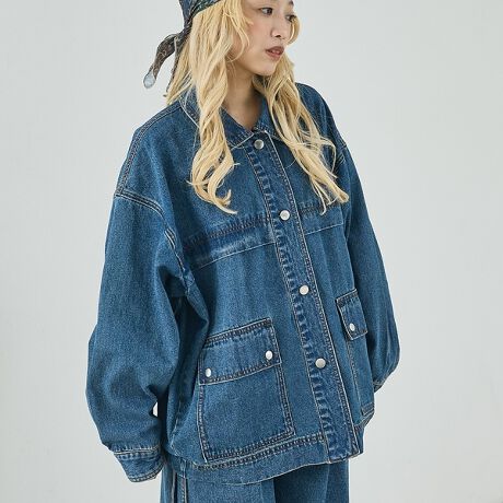 オーバーサイズでゆったりとしたシルエットが特徴のデニムカバーオール。