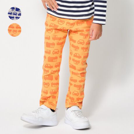 柔らかく、伸縮性のあるストレッチリップル素材で履きやすく、履かせやすい!動きやすいのでデイリー使いにピッタリ!車のシルエットの総柄。ストレートシルエットのロングパンツ、長ズボン。【アイテム】シンプル ベーシック 無地 カジュアル お洒落 オシャレ かっこいい かわいい 可愛い 普段着 お外着 お外遊び着 デイリーウェア お出かけ着 ロング丈 長丈 長ズボン フル丈 ボトムス 子ども こども 男児 男の子 ボーイズ キッズ ベビーサイズ トドラーサイズ 幼稚園 保育園 小学校 通園 通学 小学生 2026年春夏物新作 丸高衣料 ライトグレー 灰色 オレンジ ムージョンジョン