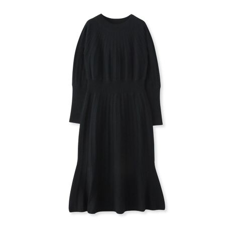 縦ラインの編み地とウエストがリブできゅっと見せてくれるのでよりスタイルアップ効果があります。