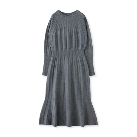縦ラインの編み地とウエストがリブできゅっと見せてくれるのでよりスタイルアップ効果があります。