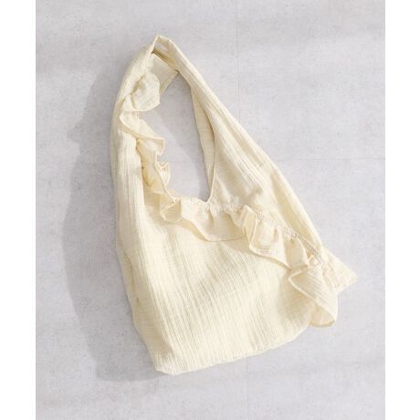 フロントの大きめなフリルが目を惹くトライアングル型バッグ。軽量でマチもあり、肩掛けしやすいハンドルの長さで使い勝手が良いのもポイントです。合わせやすい無地のイエローに、アクセント使いにぴったりなドット柄を加えた3色展開にも注目。通勤通学などデイリー使いにはもちろん、荷物の多い旅行時のサブバッグとしても活躍するおすすめのアイテムです。※モデル着用画像は、光の当たり具合で色味が違って見える場合がございます。※お使いのモニター環境によって商品の色味が違って見える場合がございます。