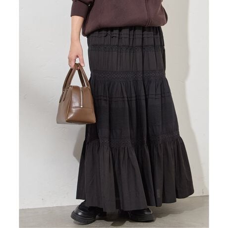 ピンタックを贅沢に配した春らしい華やかなティアードスカート。