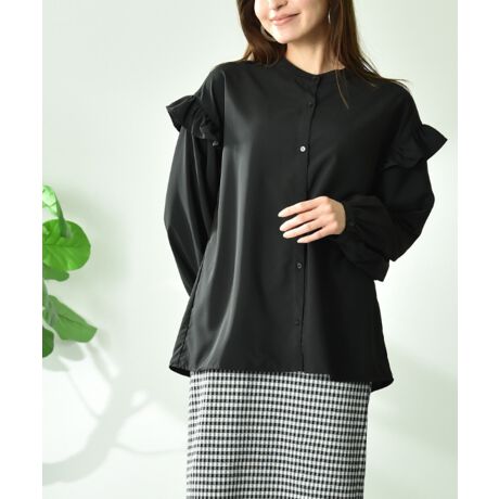 透け感が少なく、柔らかなパウダータッチが魅力のデシン素材を使用。体にフィットしすぎないサイジングで、1枚でさらりと着ていただけます。シンプルなデザインながら、袖のフリルでこなれ感をプラス。開き過ぎないネック周りで顔回りをすっきり演出◎合わせる物次第でちょっとしたお出かけからセレモニー、またデイリーにも活躍する1枚です。