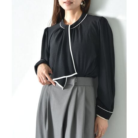 綺麗な落ち感のあるポーラ素材を使用したボウタイブラウス。ネックレスが無くても胸元を上品に演出してくれ、1枚着としてはもちろん、ジャケットのインナーにも◎何と言ってもポイントは、タイの取り外しができるのが嬉しい2WAYアイテムです。