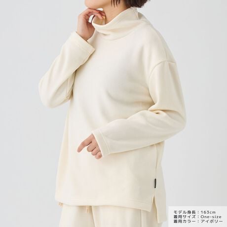 首元は柔らかな肌触りのハイネックで抜群のあたたかさ。ゆったりとしたデザインで締め付け感がなくストレスを感じません。
