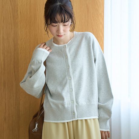 着心地:ほどよくフィット感があり、すっきり着られる着心地。一枚でも羽織でも使えて、スタイリングの幅が広がるニットカーデです。