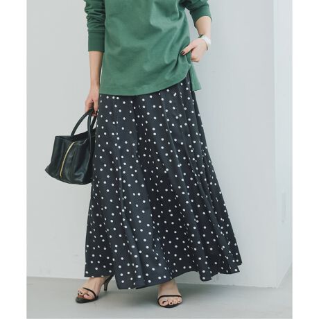 控えめな艶が上品に映える、ドットサテンフレアスカート。
