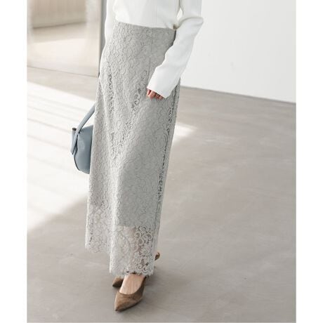 レースを贅沢にあしらったエレガントな雰囲気漂うタイトスカート。
