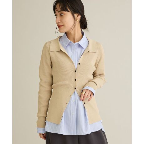 上品な襟付きデザインが顔まわりをきれいに見せ、落ち着いた印象をプラスしてくれます。