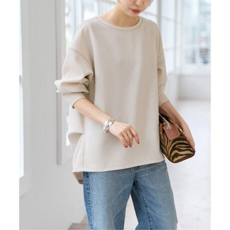 後ろ身頃にタックを入れることで、さりげないニュアンスが生まれ、一枚で着映えするデザインに。