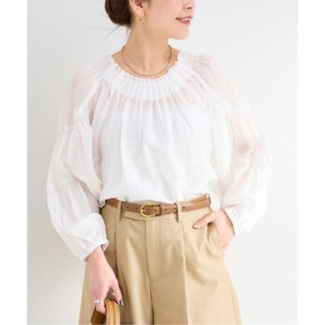 一枚着映えする動きのあるスリーブのシアーブラウス。