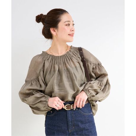 一枚着映えする動きのあるスリーブのシアーブラウス。