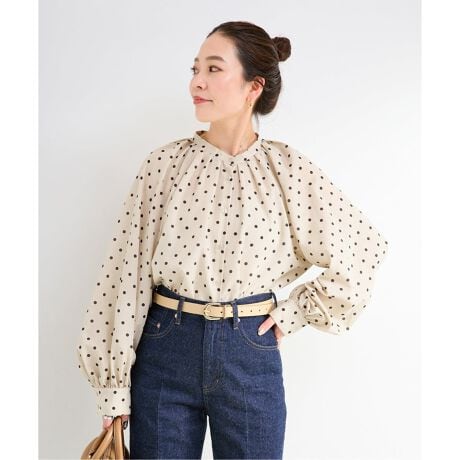 クラシカルなドット柄ブラウス。